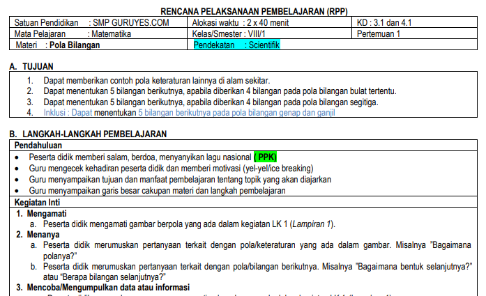 a. Peserta didik mengamati gambar berpola yang ada dalam kegiatan LK 1 (Lampiran 1).